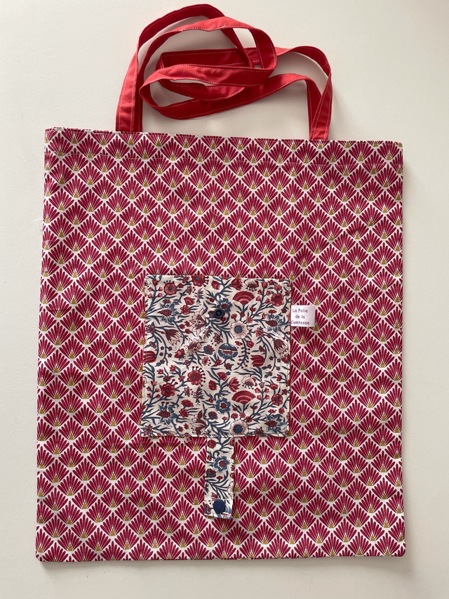 Sac pliable en coton issu de tissus recyclés ce qui fait de lui un objet unique !